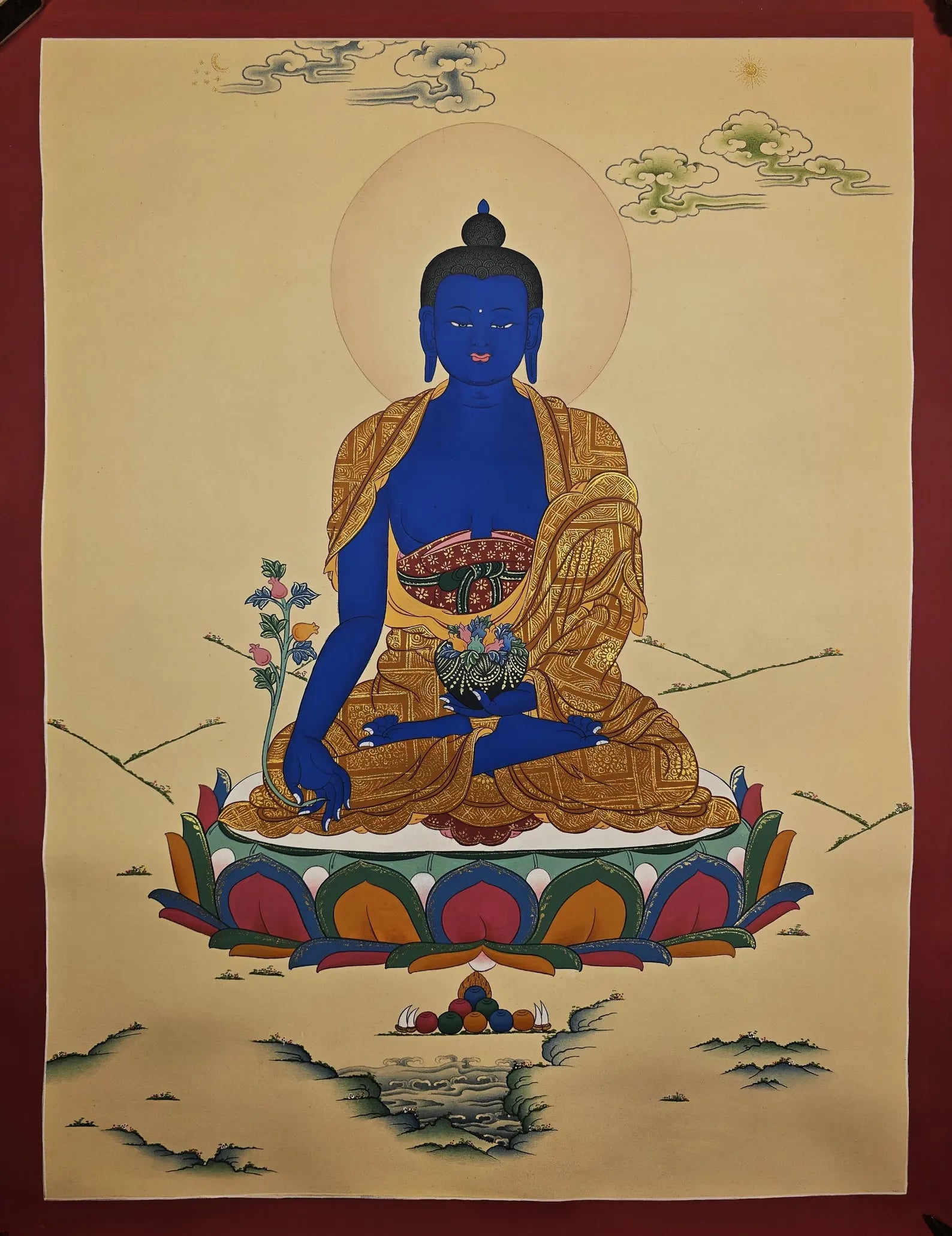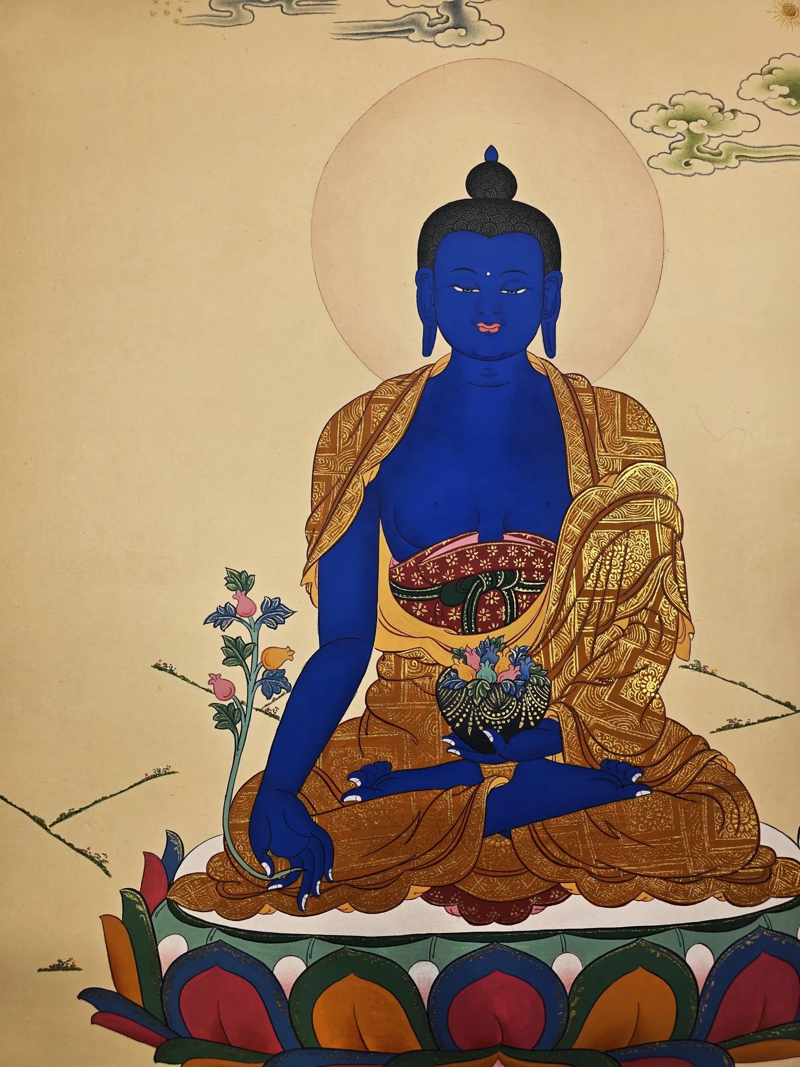 Hand-Painted Medicine Buddha Thangka | Bhaisajyaguru Painting |Tibetan Healing Art